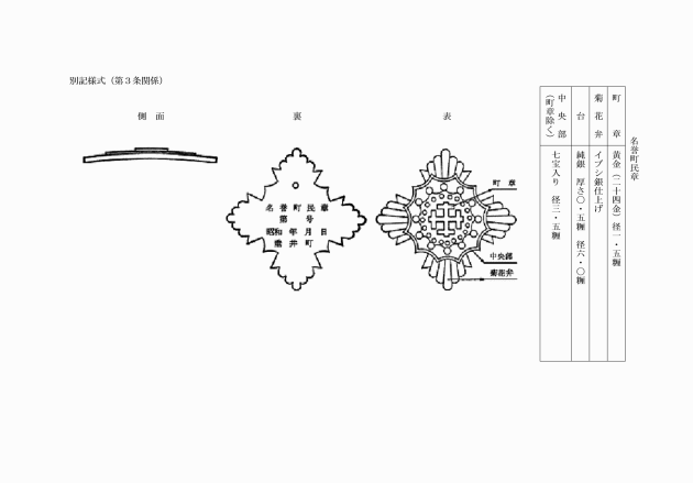 第3条 名誉町民章の制式は、別記様式のとおりとする。