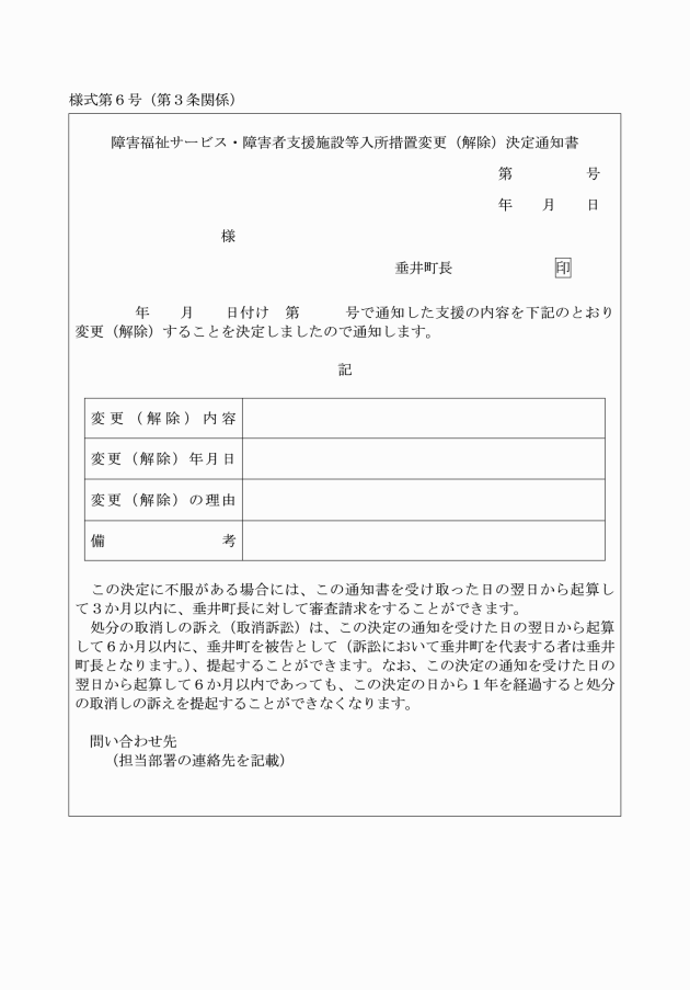 第3条 町長は、法第15条の4又は第16条第1項第2号の規定により、障害福祉サービス又は障害者支援施設等への入所の措置を行おうとするときは、必要に応じ、更生相談所の判定を求めなければならない。