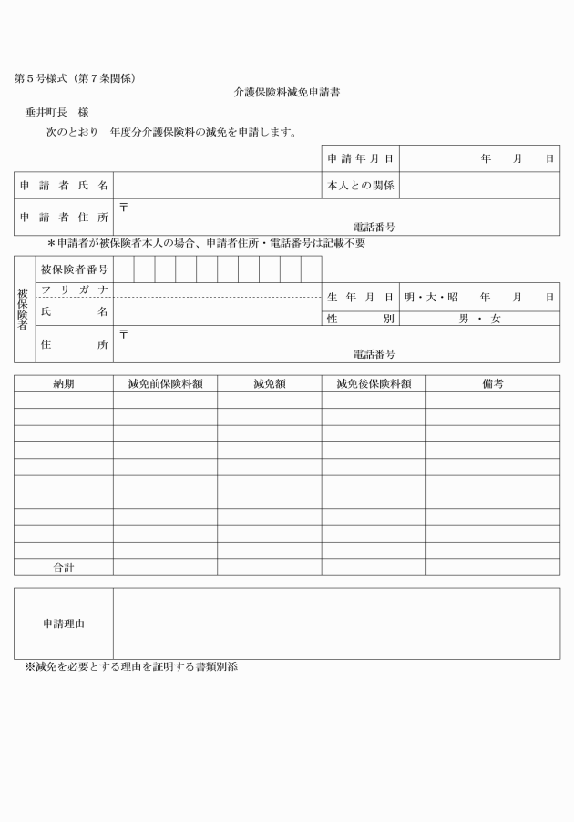 第1条 この規則は、垂井町介護保険条例(平成12年垂井町条例第2号。以下「条例」という。)の施行に関し必要な事項を定めるものとする。