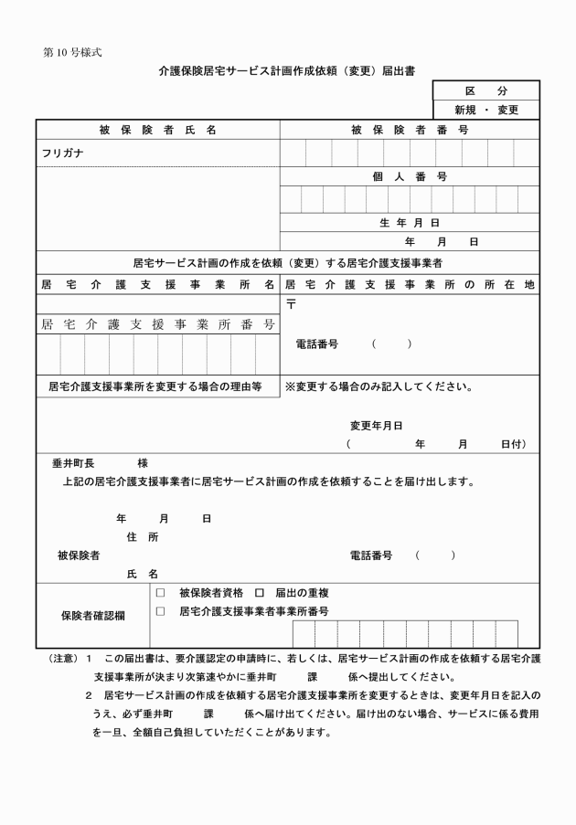 10 | 介護保険居宅サービス計画作成依頼(変更)届出書 | 施行規則第77条第1項 |