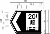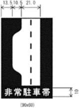 縁は、「待避所」、「駐車場」及び「まわり道(120―B)」を表示するものについては9ミリメートル、「総重量限度緩和指定道路(118の4―A・B)」及び「高さ限度緩和指定道路(118の5―A・B)」を表示するものについては16ミリメートル、「登坂車線」を表示するものについては10ミリメートル、「道路の通称名」を表示するものについては8ミリメートル、その他のものについては日本字の大きさの20分の1以上の太さとし、縁線及び区分線は、日本字の大きさの20分の1以上の太さとする。